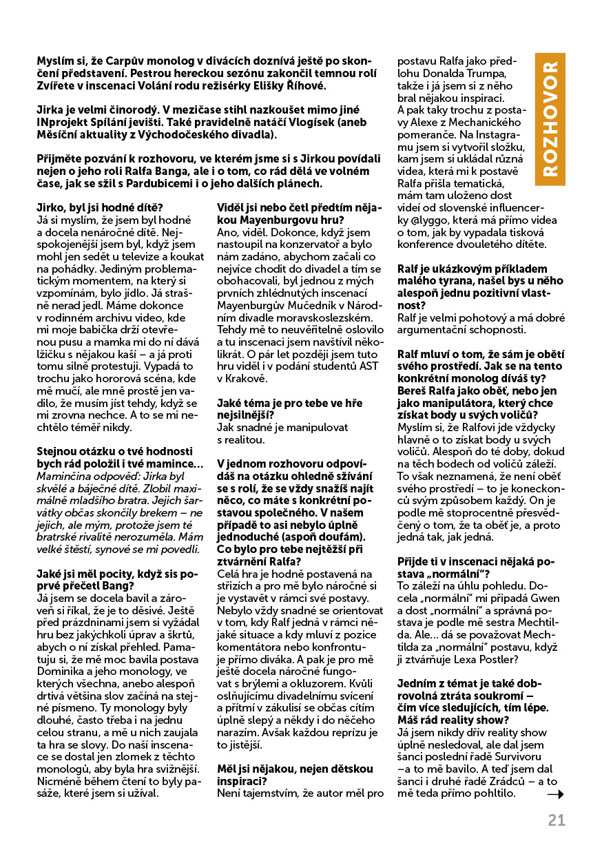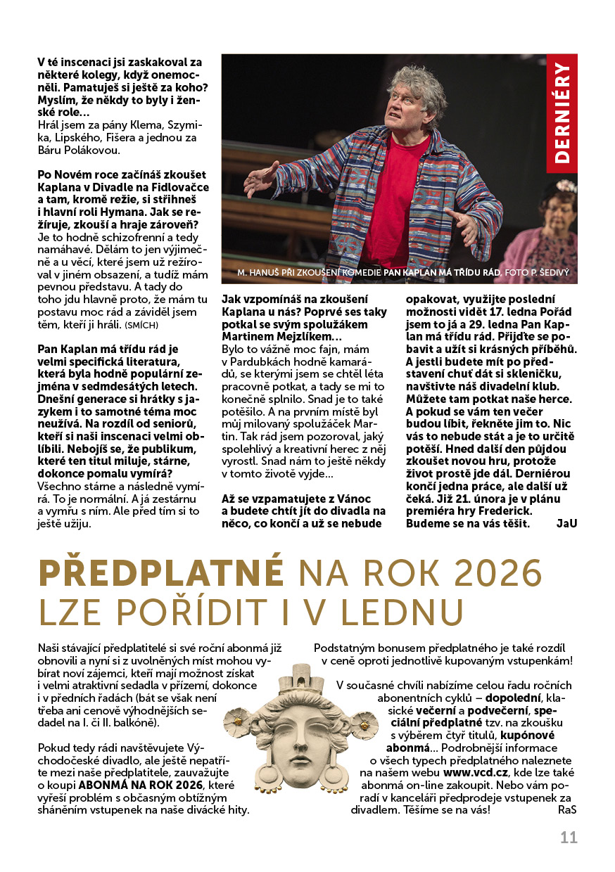 Martin Mejzlík byl jedním z pěti herců, jejichž práci ředitel Petr Dohnal na slavnostním večeru 13. prosince loňského roku jmenovitě ocenil za nepostradatelný přínos divadlu...
