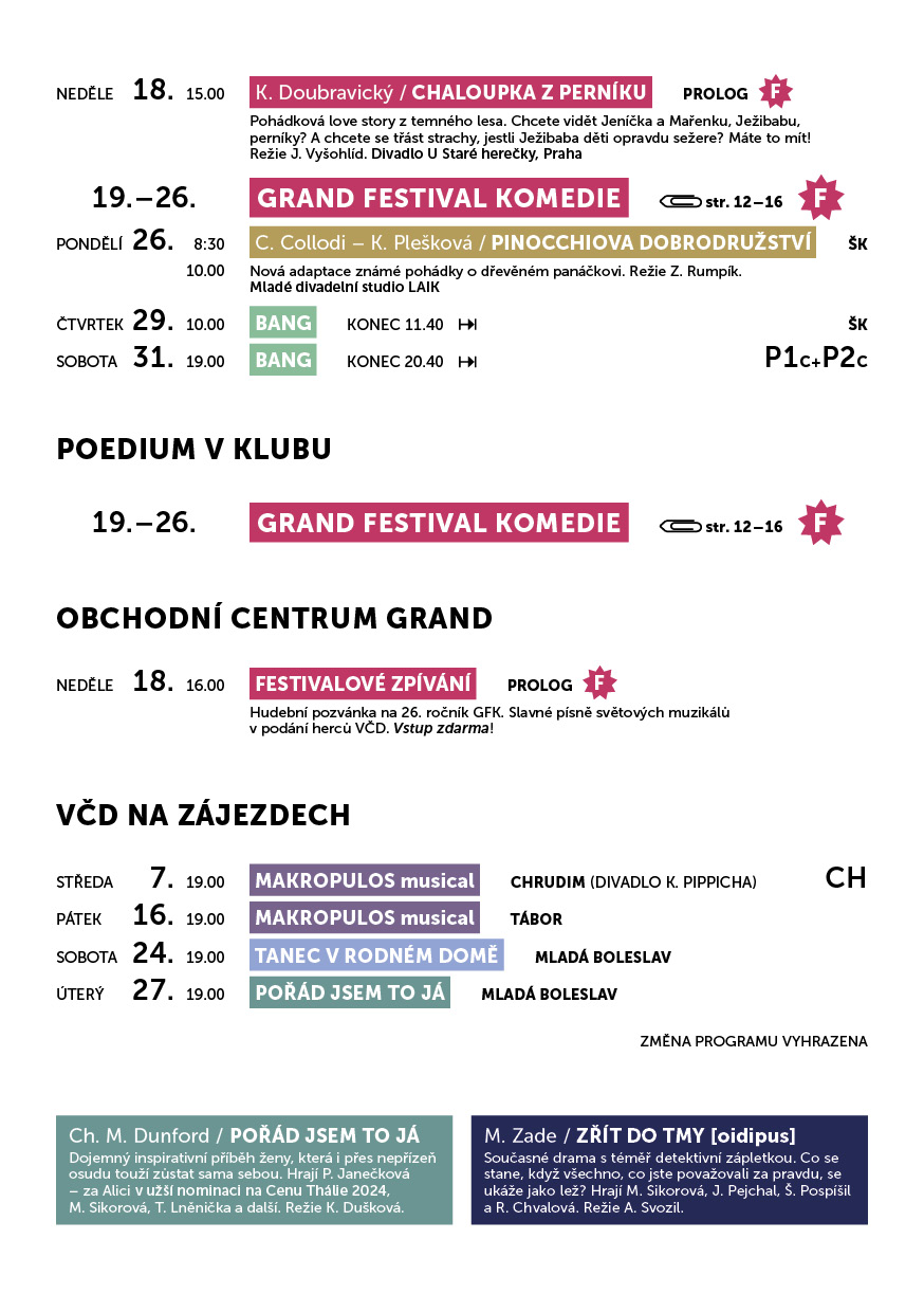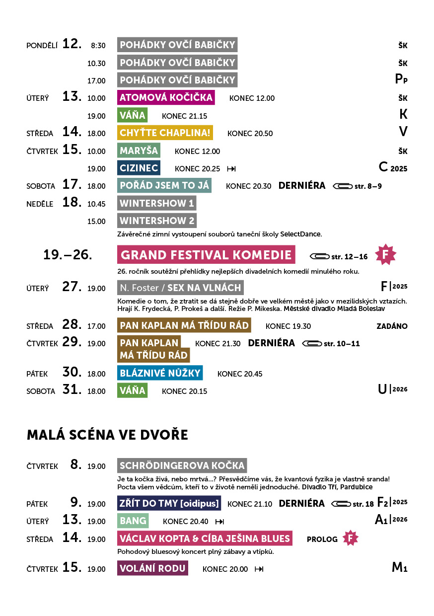 Upozorňujeme na zkrácenou otevírací dobu předprodeje vstupenek mezi svátky. Vstupenky jsou ale stále k zakoupení online...