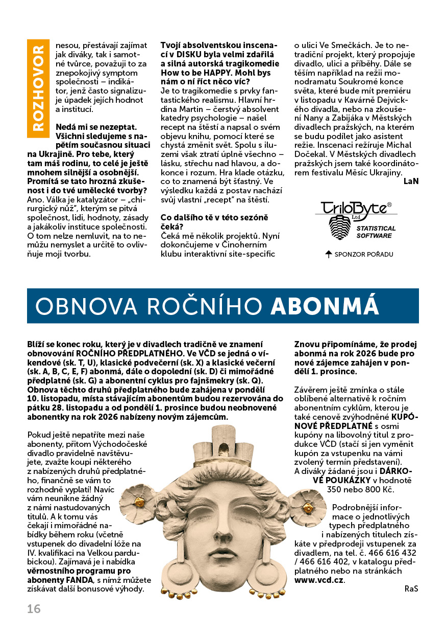 V úterý 28. října nás navždy opustil herec Jindřich Bonaventura, jenž byl v letech 1965–90 členem souboru Východočeského divadla. Čest jeho památce!