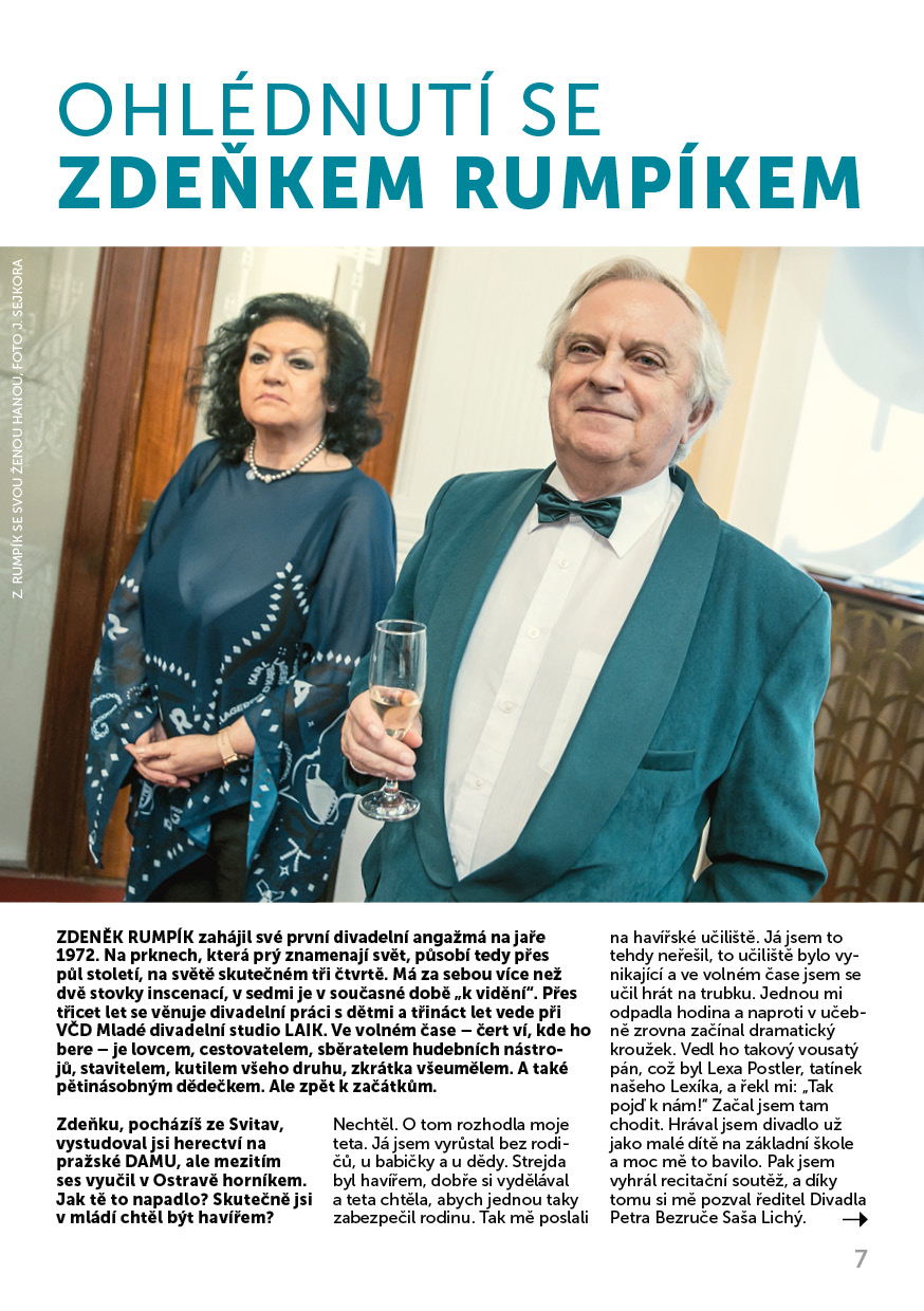 Zdeněk Rumpík působí v divadle přes půl století, na světě skutečném tři čtvrtě. Má za sebou více než dvě stovky inscenací, v sedmi je v současné době „k vidění“...