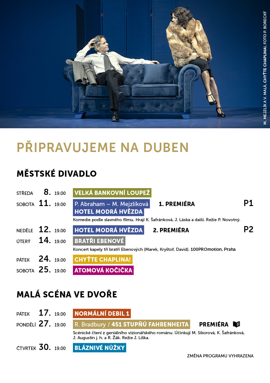 Na tomto představení lze využít 50% slevu pro studenty.10:30 Městské divadlo