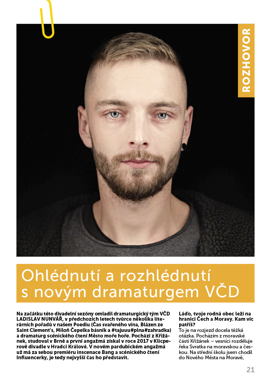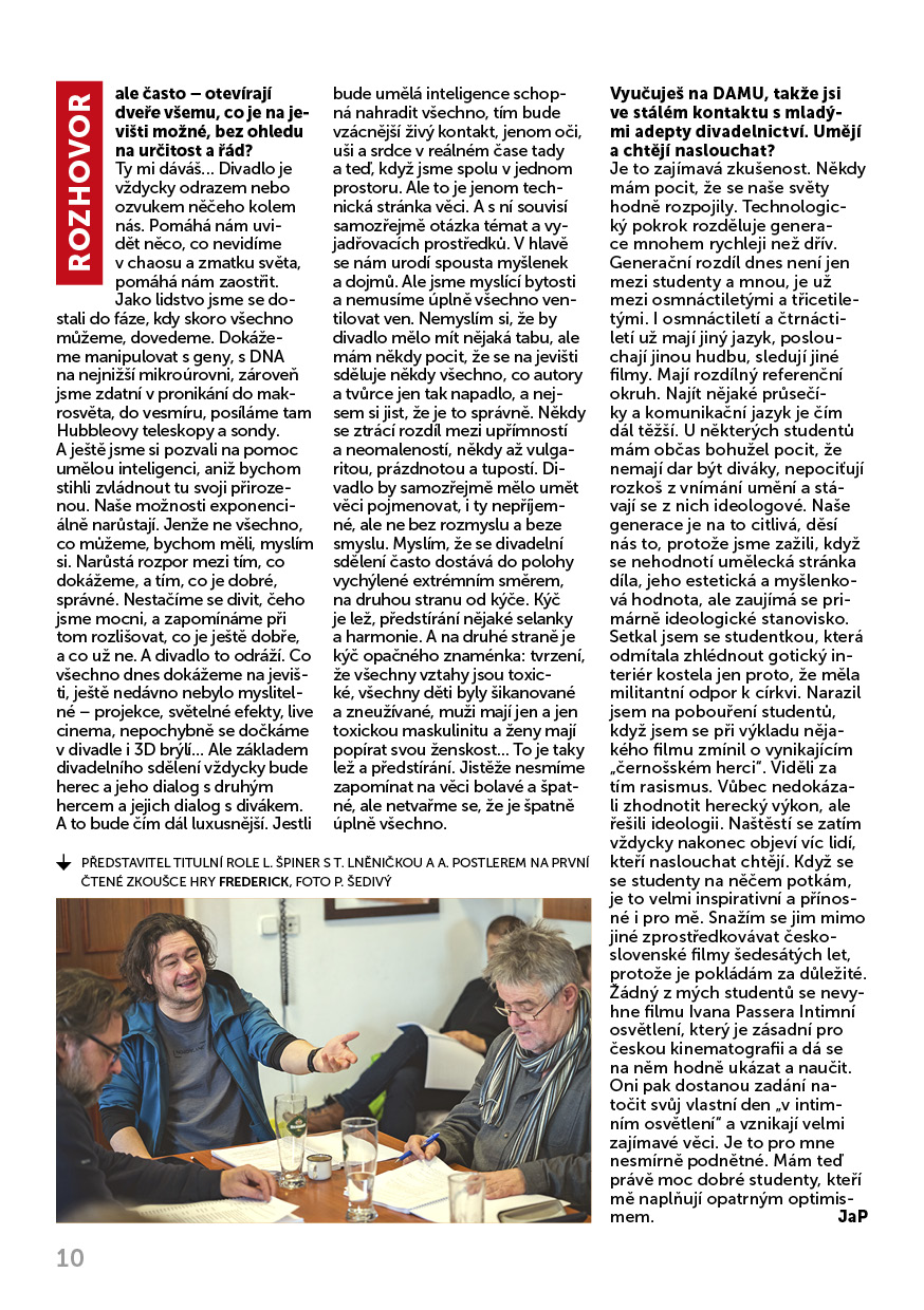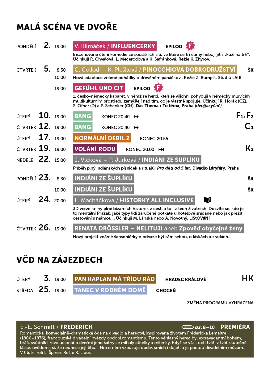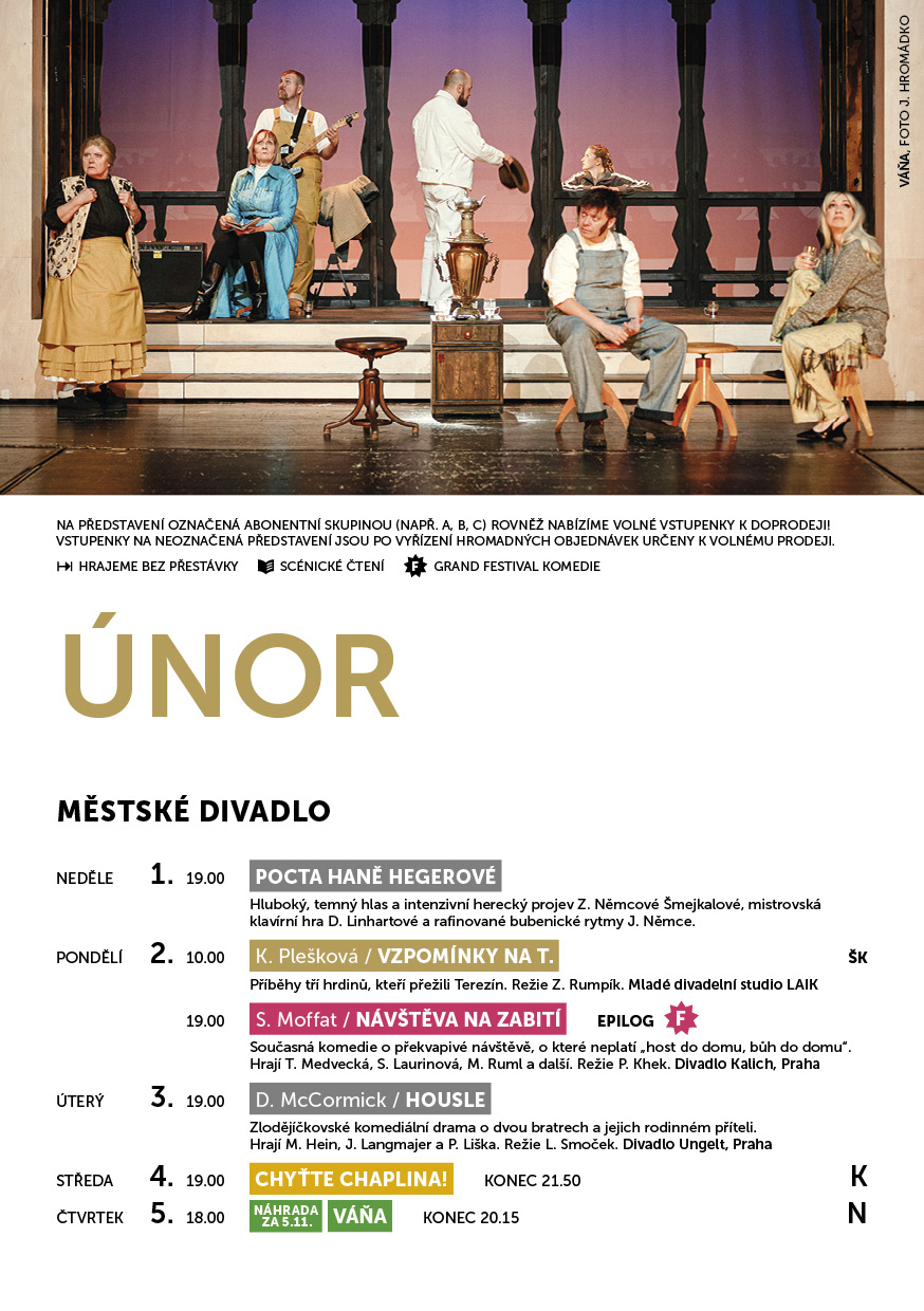 Na tomto představení lze využít 50% slevu pro studenty a speciální nabídku pro seniory: vstupenka za 250 Kč.10:00 Malá scéna ve dvoře
