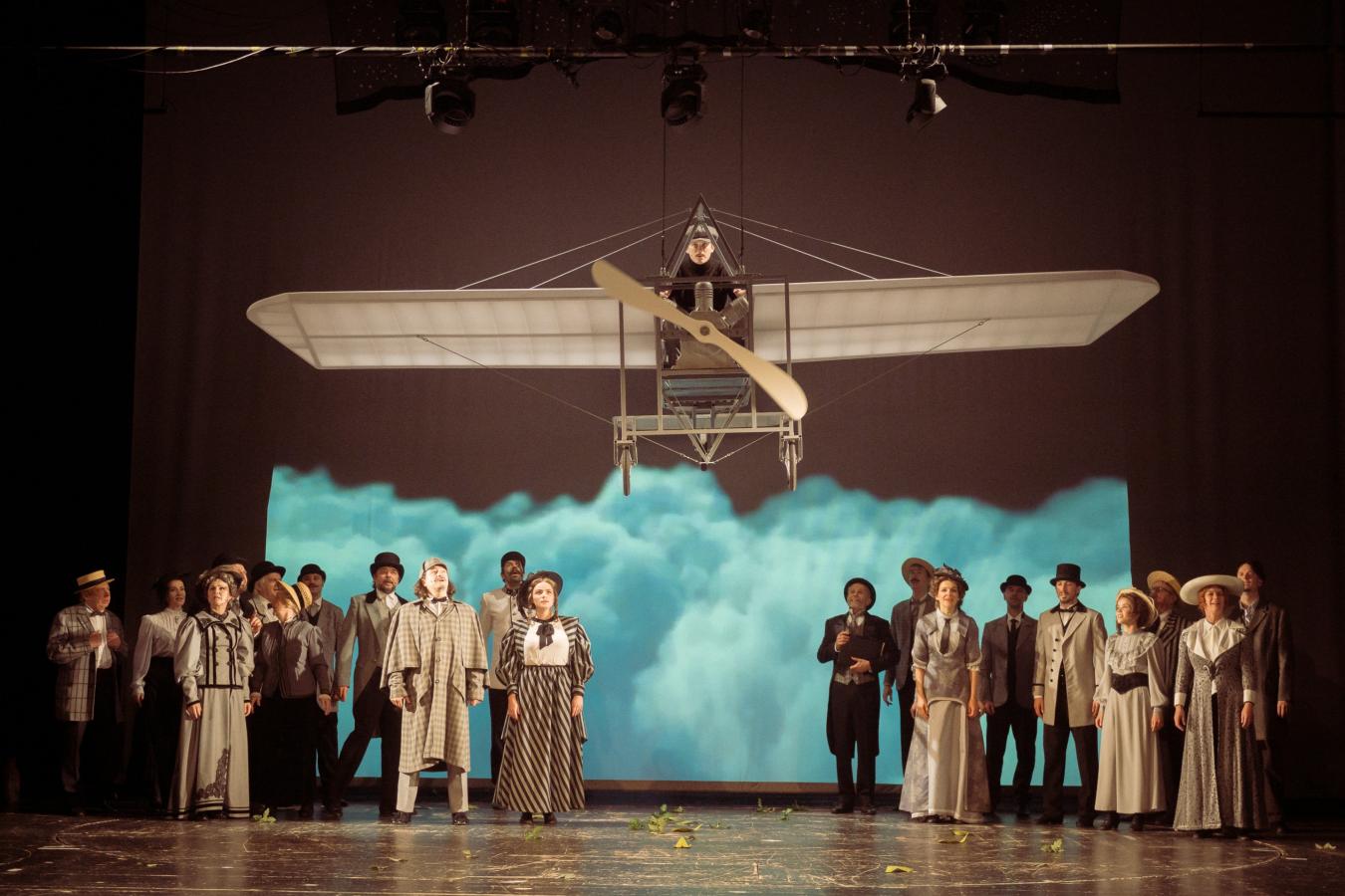 Na křídlech blériota na vrchol žebříčku divácké oblíbenosti stejně jako v minulém roce vzlétl muzikál Do nebes!, jehož ústředním hrdinou je pardubický rodák Jan Kašpar. Muzikálové zpracování šťastné části života nejznámějšího z prvních českých aviatiků vzniklo přímo pro náš soubor. Libreto napsal režisér a choreograf Radek Balaš, jenž svůj text na velkém jevišti Městského divadla také inscenoval. Hudbu složil jeho dlouholetý spolutvůrce, herec a skladatel Ondřej Brousek. Inženýra Kašpara ztvárňuje Štěpán Pospíšil, po jeho boku vystupují Petra Janečková, Eliška Jechová, Jan Musil, Josef Pejchal, Ladislav Špiner a další. Orchestrální hudbu nahrála Komorní filharmonie Pardubice pod vedením dirigenta Jana Kučery.