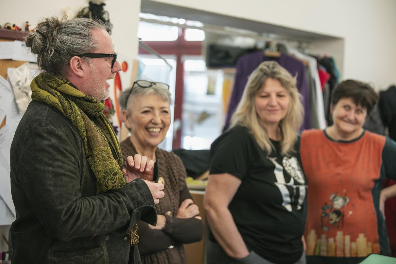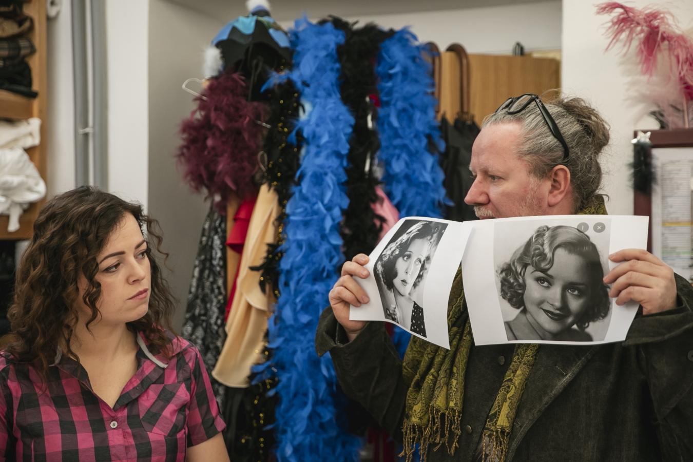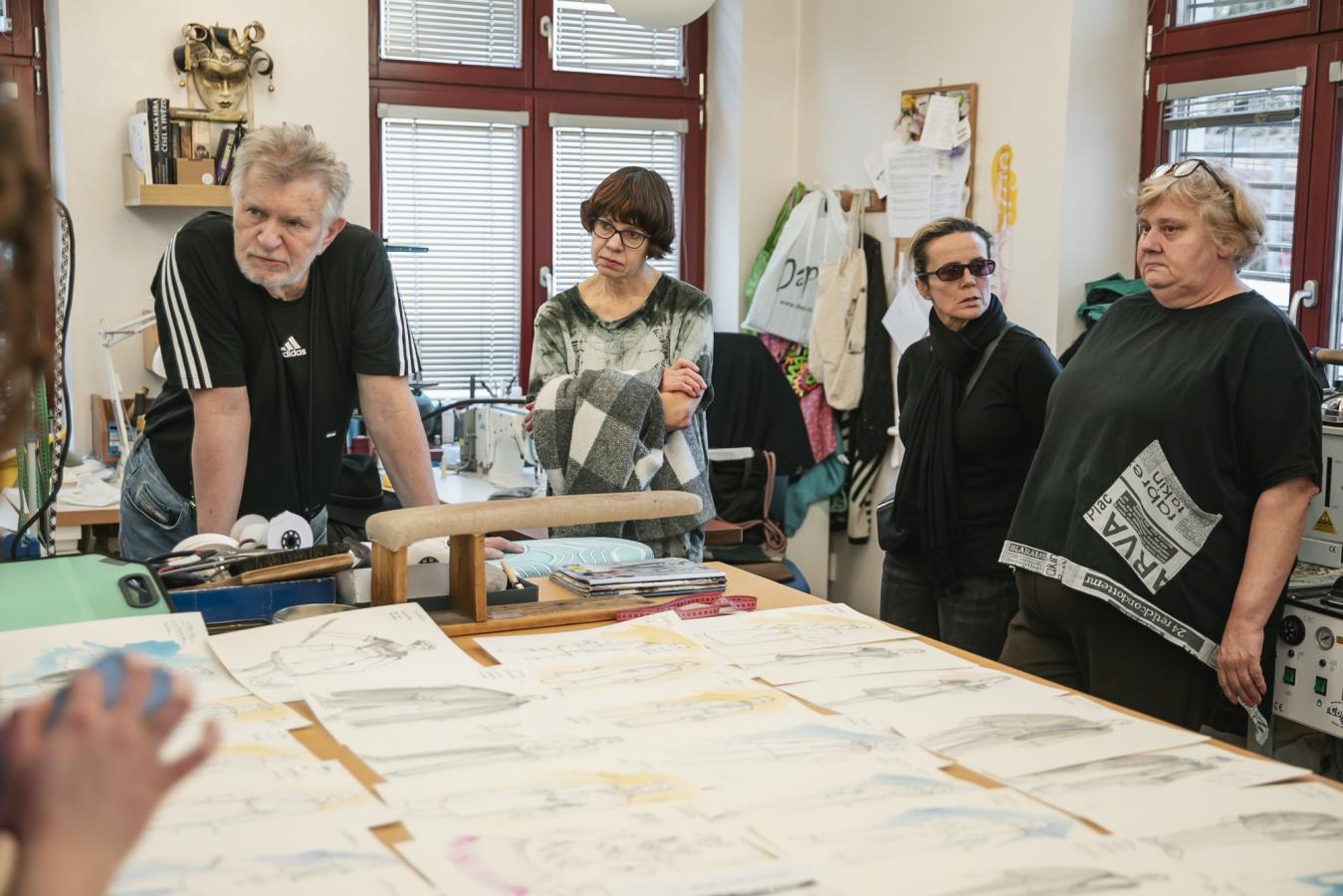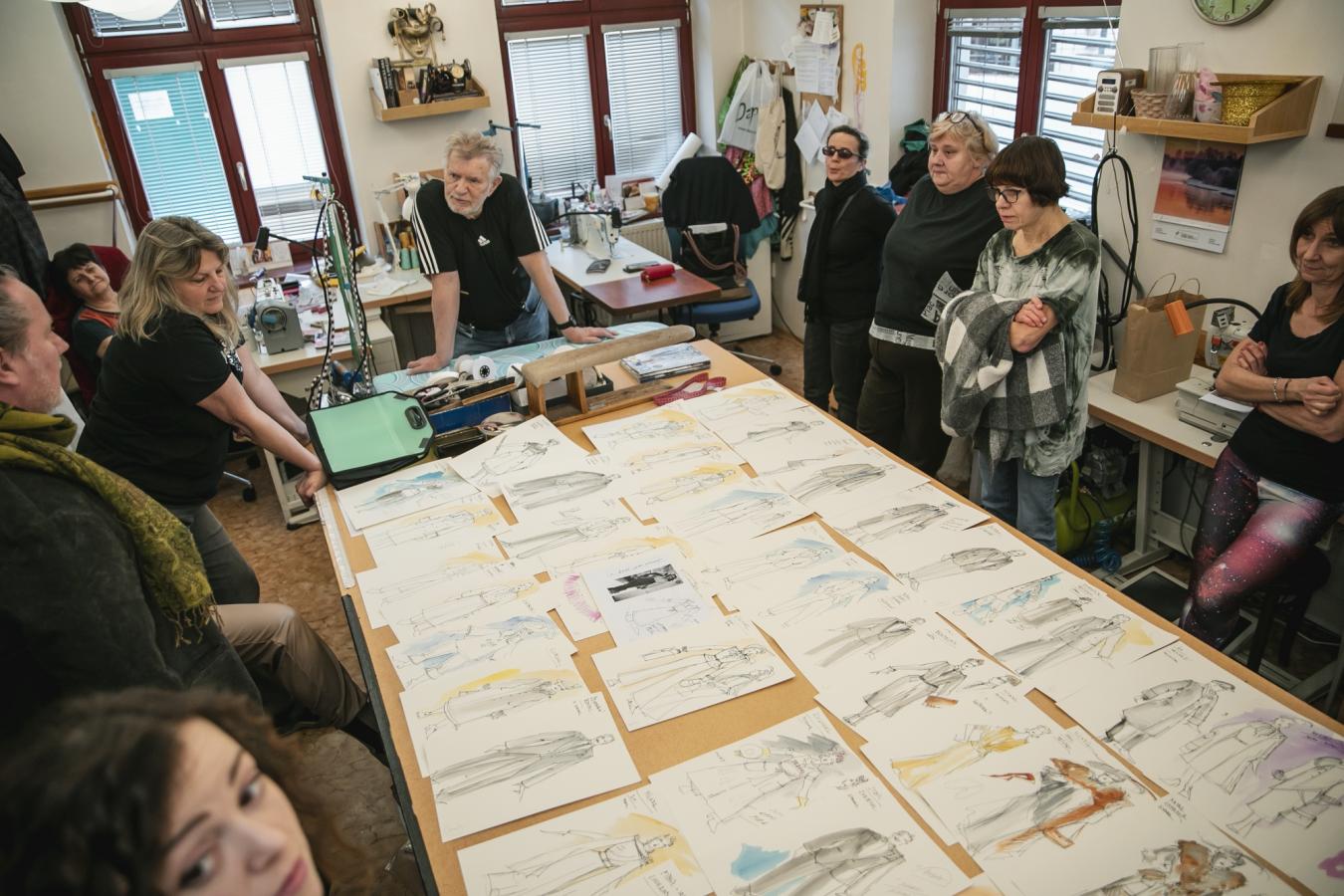 V pondělí 23. února se naše krejčové, vlásenkářky a garderobiérky sešly v krejčovně s renomovaným kostýmním výtvarníkem Romanem Šolcem (podepsaným pod šaty do StarDance), který „oblékne“ chystanou komedii HOTEL MODRÁ HVĚZDA. A jak probíhala předávací porada?