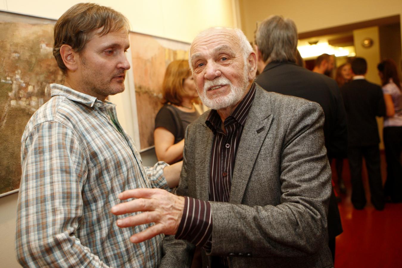 Premiéru předznamela vernisáž výstavy malíře Milana Krynka (vpravo), kterou uvedli vedoucí galerie Zázvorka v Novém Městě nad Metují Petr Suchánek a Lída Vlášková, foto Jiří Sejkora