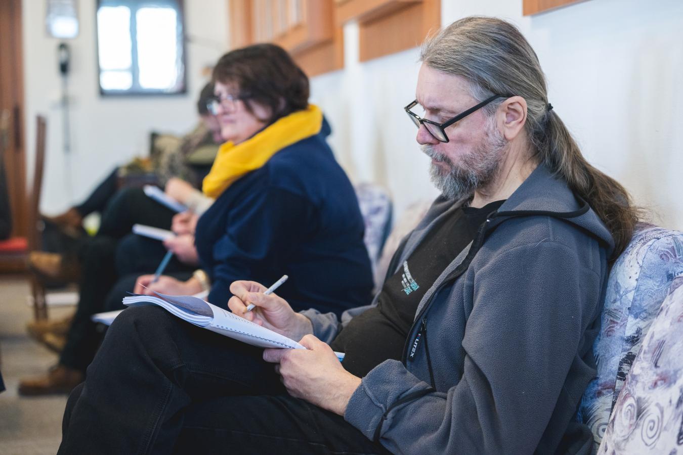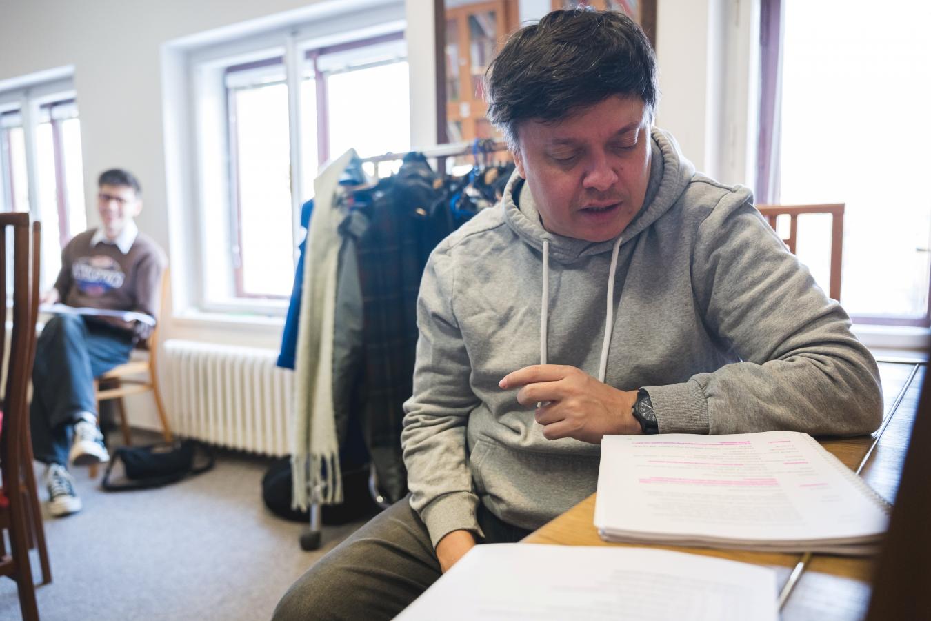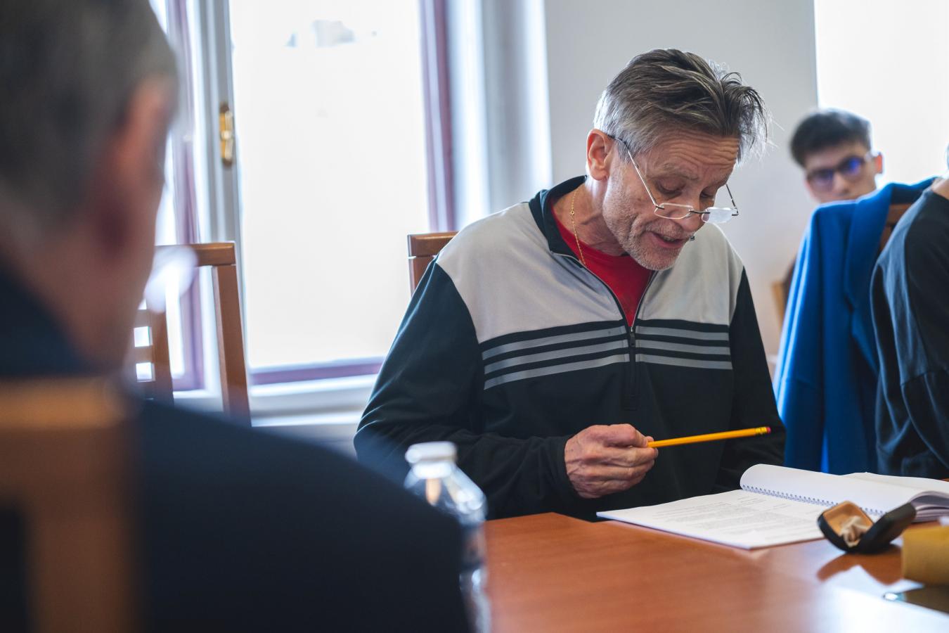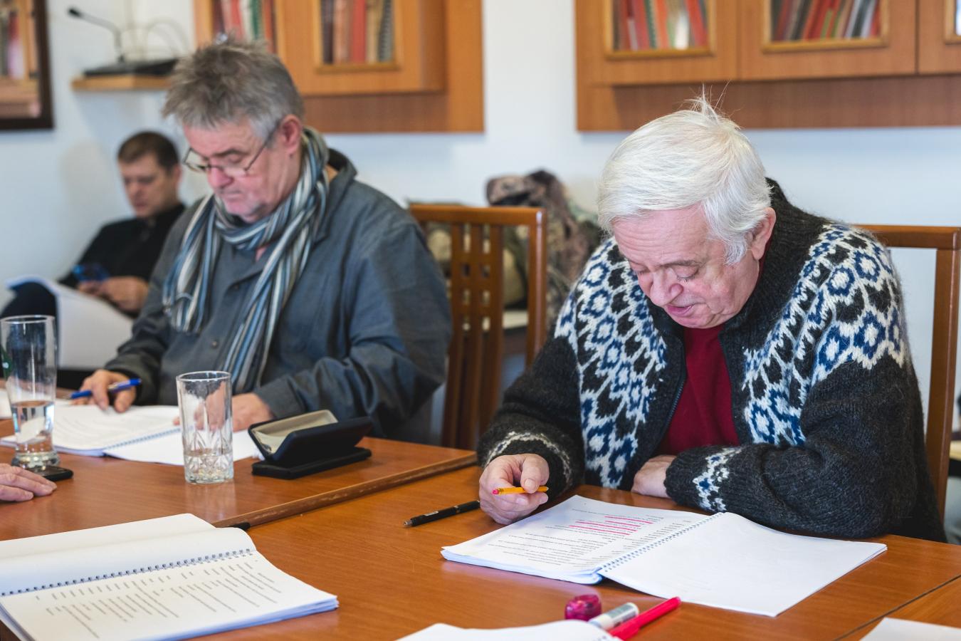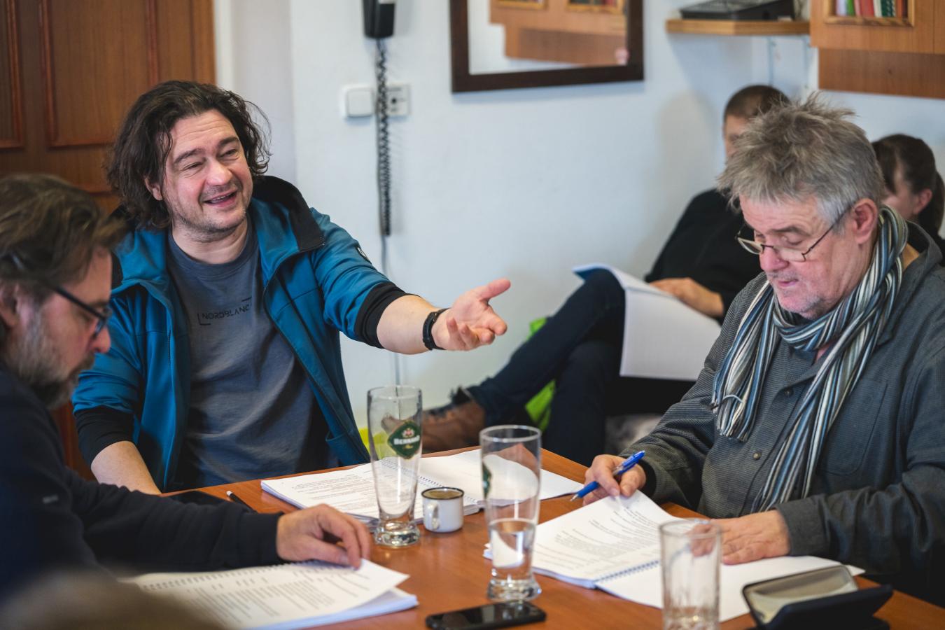 Přání klidného zkoušení z úst ředitele VČD Petra Dohnala, jenž v inscenaci bude tentokrát také hrát, foto Petr Šedivý