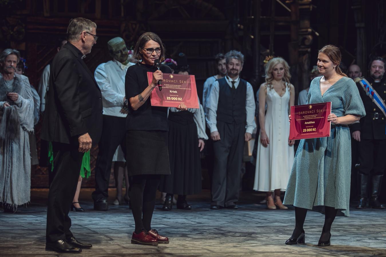 Cena Komedie diváků je tradičně spojena s finančním darem od společnosti Elektrárny Opatovice v hodnotě 50 tisíc korun. „Jako ředitel festivalu dlouhodobě usiluji o to, aby tyto prostředky nezanikly v běžných rozpočtech divadel, ale aby o jejich využití rozhodoval samotný tvůrčí tým, který za oceněním stojí. V minulosti například herci Divadla ABC využili tuto příležitost k pořízení piana do svého divadelního klubu, opatřeného pamětní deskou připomínající jejich festivalový úspěch. O to větší radost mi udělala letošní iniciativa našeho oceněného souboru, jehož členové se rozhodli věnovat získanou částku rovným dílem dvěma významným neziskovým organizacím – spolku Amalthea, který poskytuje sociální, vzdělávací a terapeutické služby rodinám s dětmi, a Nadačnímu fondu dětské onkologie Krtek,“ uvedl ředitel VČD Petr Dohnal.
