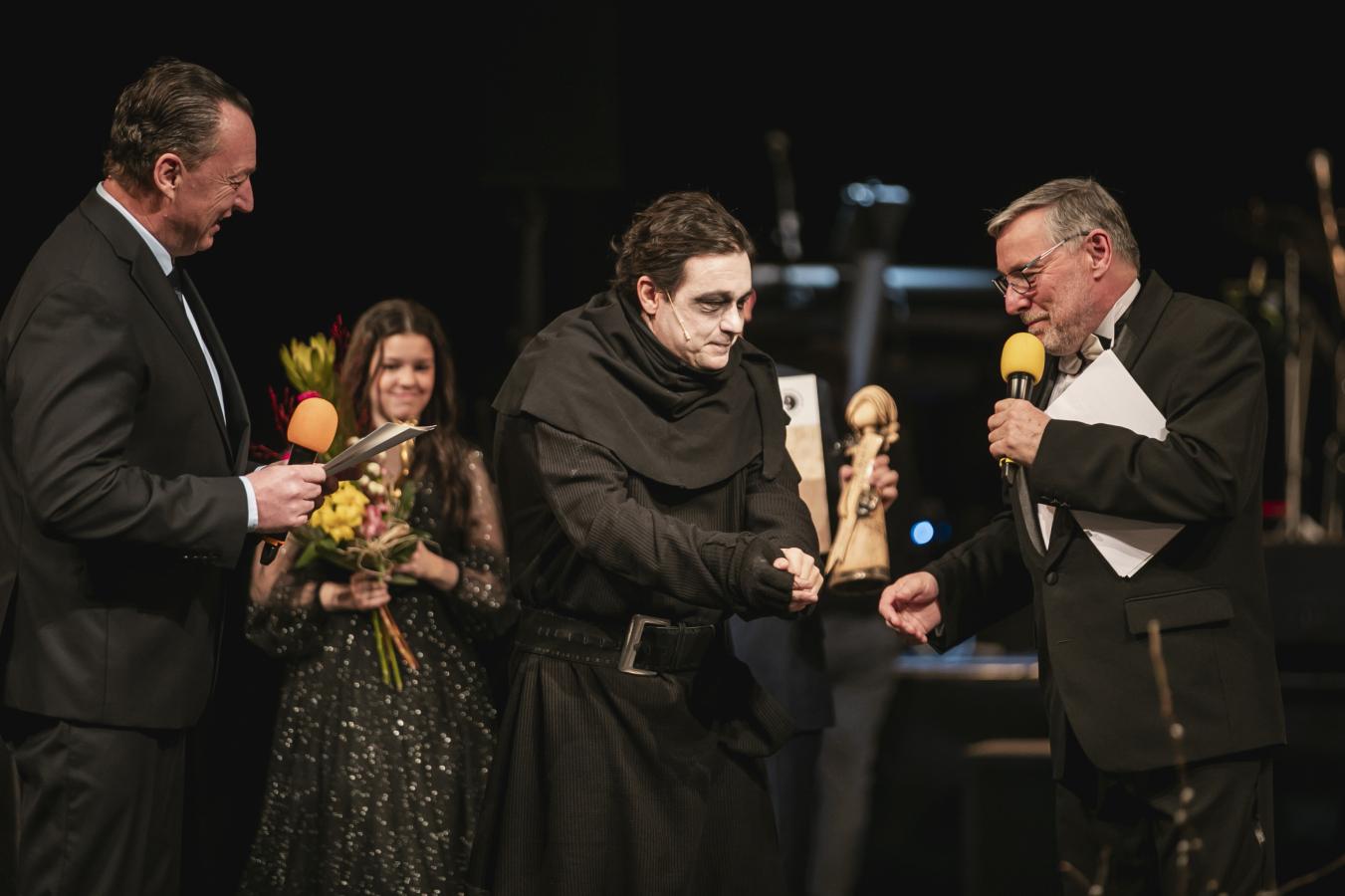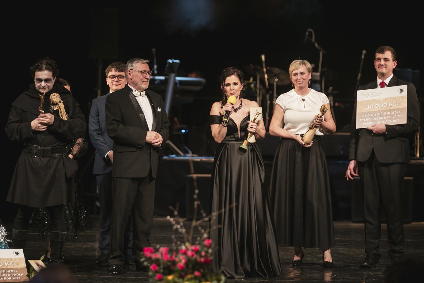 Absolutní vítězka ankety o NEJ herce Petra Janečková po boku Petra Dohnala a Romany Oulické z Nadace Lenky a Romana Šmidberských, která oceněným věnovala sošky a šeky, foto Jiří Sejkora