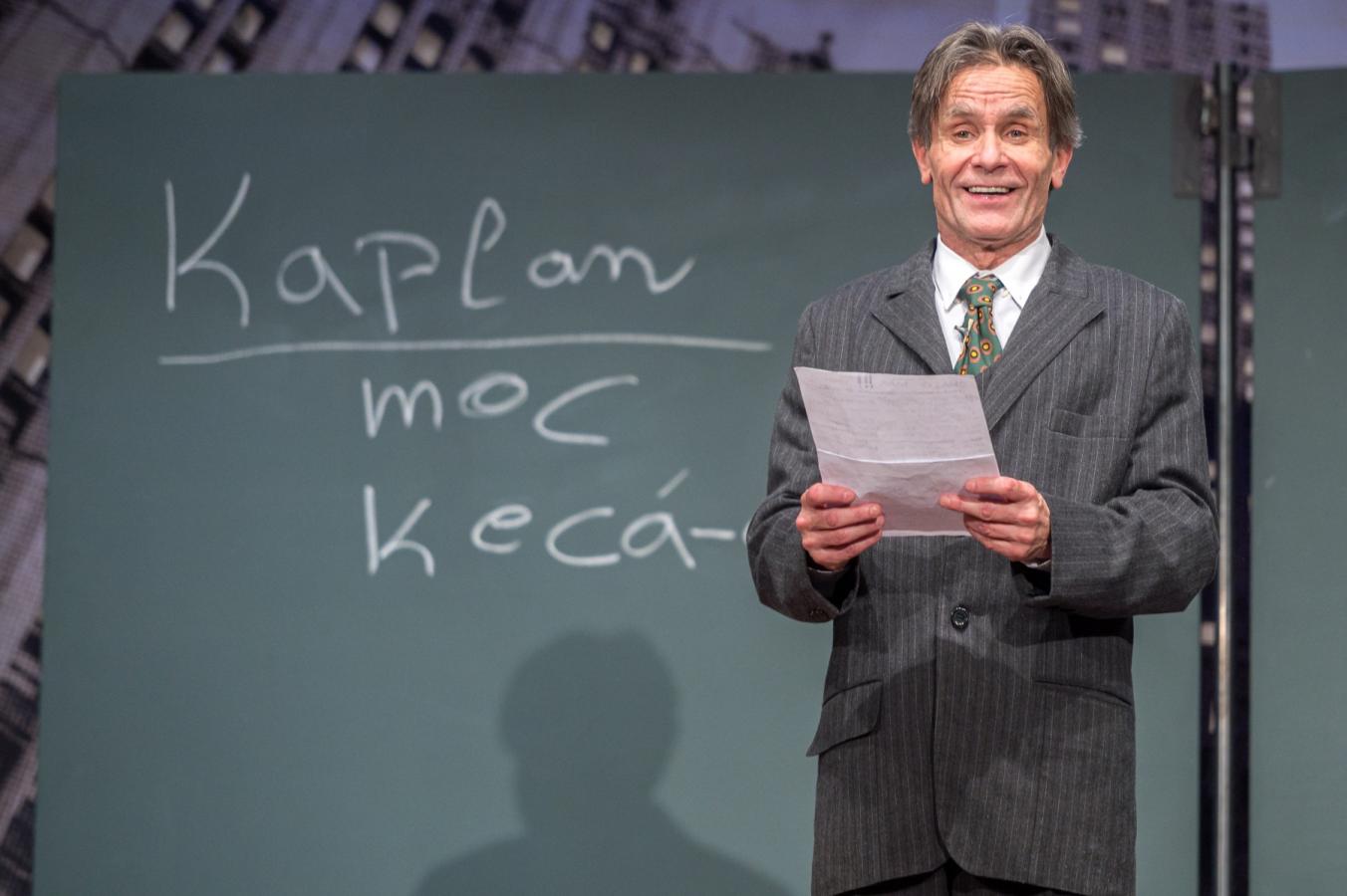 Diváci se přes tři roky bavili komickými příhodami profesora Parkhilla a jeho žáků na newyorské večerní škole angličtiny pro dospělé. „Studenti, utíkající před druhou světovou válkou z nejrůznějších koutů Evropy, hledají v Americe svůj nový domov. Podmínkou je však zkouška z angličtiny, což je pro mnohé z nich přímo nadlidský úkol. Hlavním hrdinou je svérázný Hyman Kaplan, jenž se s cizím jazykem potýká s neuvěřitelnou vervou, nezdolnou energií a velmi osobitou logikou. Jedinečný slovní humor se ve hře střídá se steskem po domově, dojemné situace se prolínají s vtipnými – a to vše je doplněno řadou písniček a tanců z celého světa,“ připomíná dramaturgyně Jana Uherová.