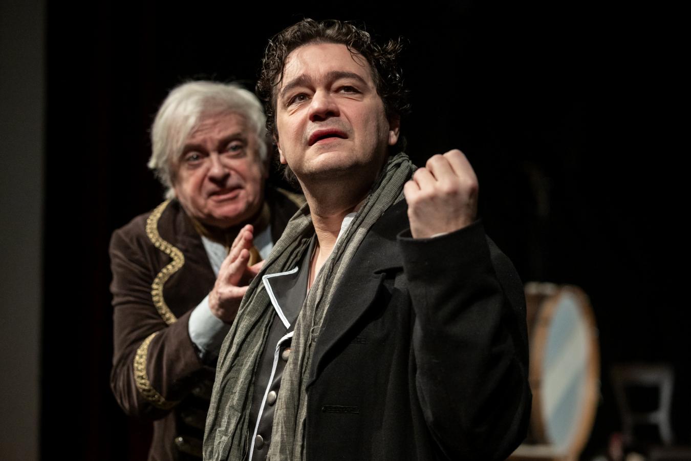 Máš pravdu, jsem živočich a Frederick do jisté míry taky. Spíš jsem se hlídal v tom, abych nešel do nějakých zbytečných expresí a extrémů. Protože přece jenom, když jsem začínal hrát divadlo, a pak třeba ještě i ve třiceti, když jsem tu hrál Amadea, vystřelenýho do vesmíru, byly herecké prostředky zkrátka jiné. Příští rok je mi padesát, i Fredericka hrajeme v podstatě jako padesátníka. A neslušelo by se, aby se člověk v tomhle věku choval nějak přehnaně expresivně. Musí být vidět, že už to má v hlavě srovnané, protože je schopný během chvilky vymyslet lest na policii, na autora hry, kterou navíc bleskově upraví. Je zkrátka pořád a ve všem napřed – před ostatními. Stejně jako když pak dojde k té fatální promluvě s otcem Bereniky, v tu chvíli už také jedná předem a divák se dovtípí až později. Proto jsem se snažil k téhle roli přistoupit racionálně, protože Frederick takový zkrátka byl. A říkal jsem si, že když Frederick, tak i já bych měl být na tom jevišti konečně trochu rozumnější. (smích)