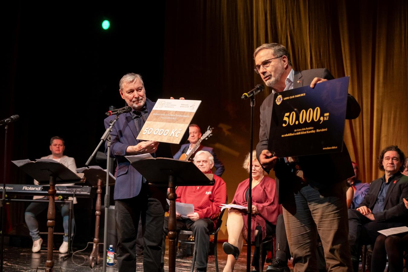 Šek pardubického Lions Clubu na rehabilitaci a léčbu Karolíny Horvátové předával Alexandr Krejčíř, foto Petr Šedivý