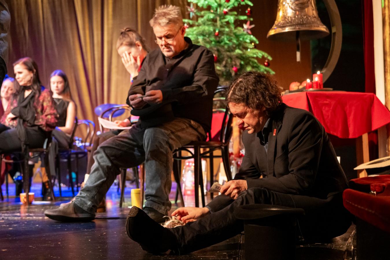 Dlouholetou tradici jsme neporušili ani letos a opět po roce uspořádali neformální setkání diváků s herci, kteří výjimečně nevystupují v nazkoušených rolích, ale sami za sebe. Divadlem se znovu nesly nejen koledy, ale také vánoční vzpomínání a vyprávění, jeviště mimořádně patřilo i odvážlivcům z řad publika a hostům a nechyběly ani vánoční dárky… O příjemnou atmosféru a hudební doprovod se postarala kapela divadelních přátel s názvem Kosteam.