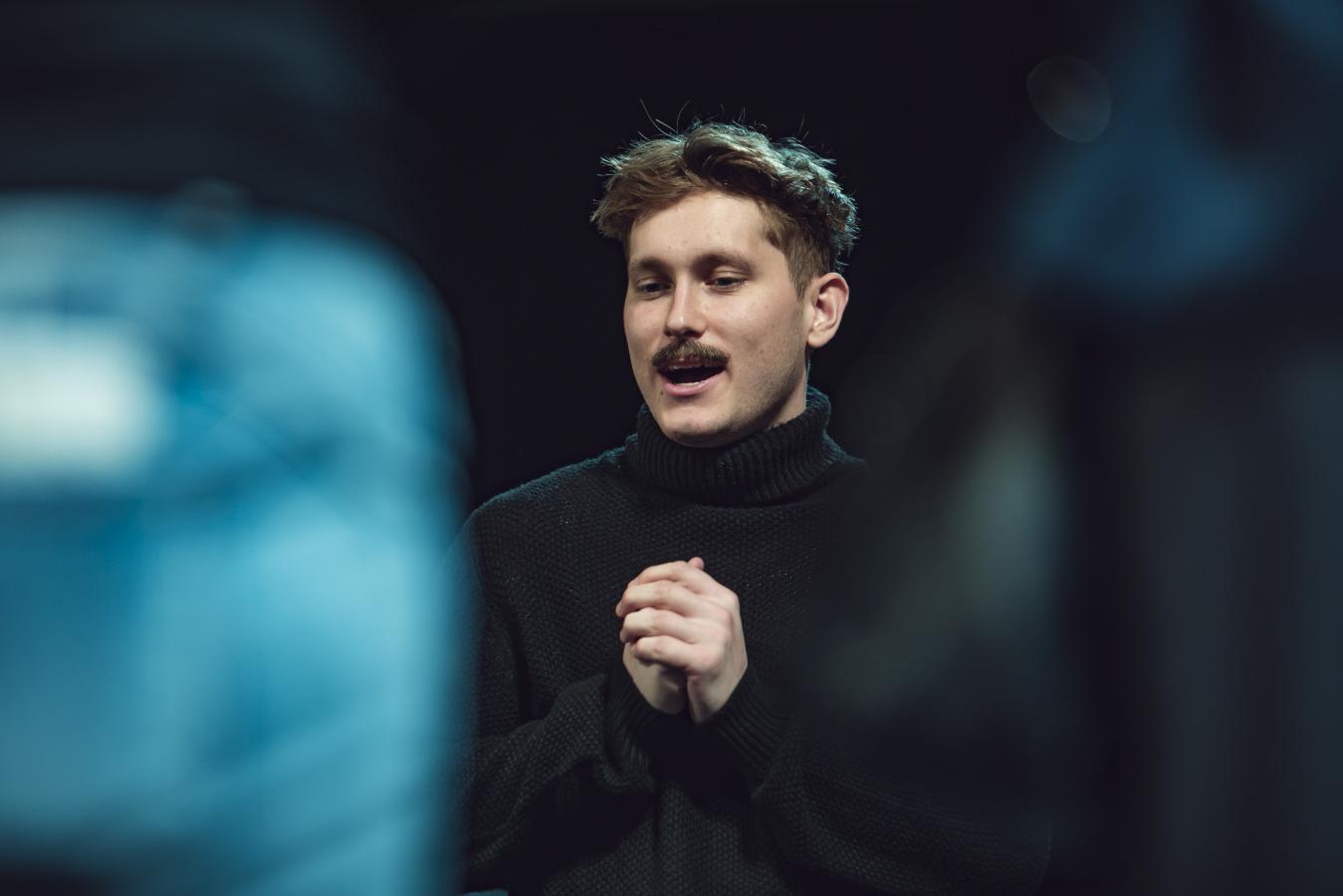 Do workshopu na jevišti se zapojil i představitel hlavní role muzikálu Do nebes! Štěpán Pospíšil, foto Jiří Sejkora