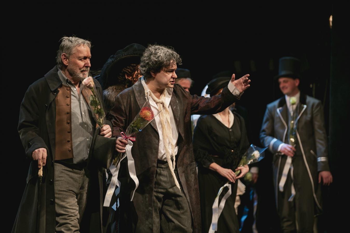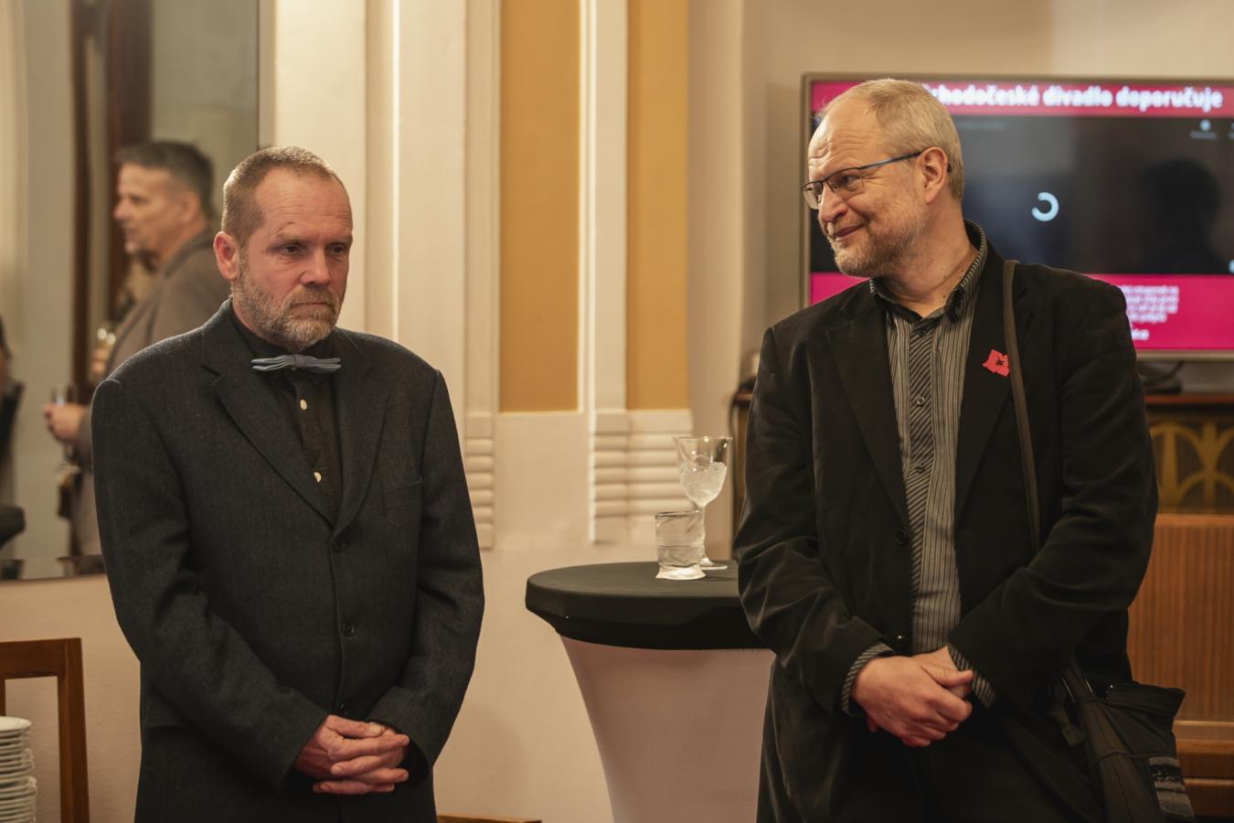 Ladislav Špiner s Petrem Dohnlem na popremiérové děkovačce, která končila ovacemi ve stoje, foto Jiří Sejkora