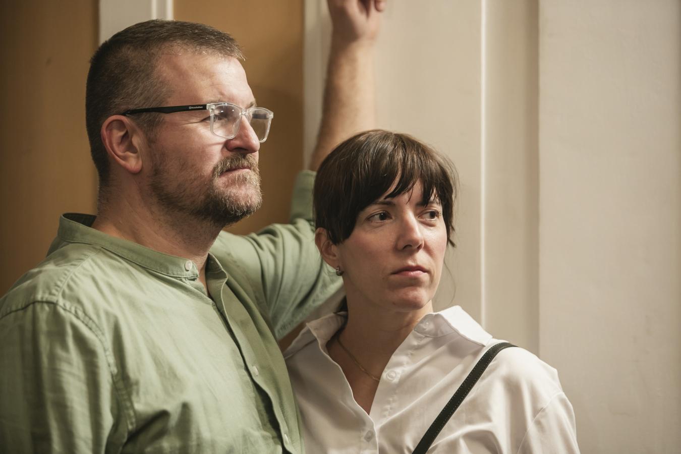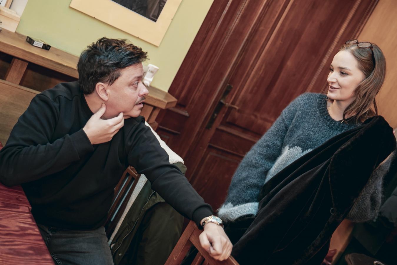 Autor hudby Pavel Helebrand v rozhovoru s ředitelem VČD Petrem Dohnalem, jenž ve Frederickovi hraje také ředitele divadla, foto Jiří Sejkora