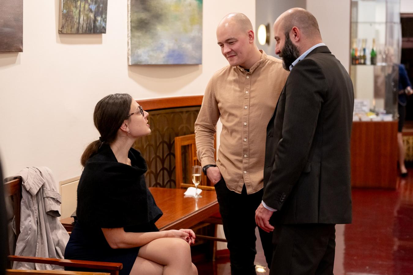 Dramaturgyně Anna Zindulková Hlaváčková, režisérka Kasha Jandáčková a choreograf Jaro Viňarský už na popremiérovém rautu, foto Petr Šedivý