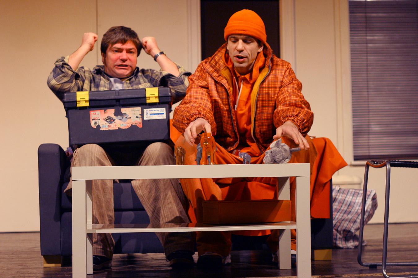 Elling a Kjell jsou kamarádi, i když k sobě mají zdánlivě daleko. Elling vystudoval gymnázium, potom se živil jako úředník a v soukromí nesměle píše verše. Kjell je sociálně zaostalý syn alkoholičky, o kterou se od dětství láskyplně staral, nemá vzdělání, je manuálně zručný, ale v komunikaci s lidmi tak neprotřelý, že ho každý považuje za méněcenného. Společné mají jen to, že oba zabloudili v překotném tempu a odcizenosti dnešního světa. Museli nějaký čas odpočívat a uvědomovat si sebe sama v bezpečí léčebného ústavu. Ve chvíli, kdy hra začíná, byli propuštěni na svobodu a dostávají společný byt, v němž se mají naučit žít nový, samostatný život. Nevědí si rady se spoustou běžných věcí, například telefon je pro něvelikým strašákem, vycházka po sídlišti obávaným dobrodružstvím a nákup v přeplněném supermarketu je úkol nad jejich síly. Ale pozor, tato výjimečně dobrá norská hra není o psychopatech, ani o „mentálech". Je o obyčejných citlivých lidech, potýkajících se s obyčejným životem v agresívním světě. Je to komedie plná nehledaného, překvapivého humoru a přívětivé víry v sílu přátelství, lásky a všech přirozených lidských citů, které dávají životu smysl a cestu. Na česky mluvící jeviště tuto komedii přineslo Národní divadlo moravskoslezské a my jsme její působivosti podlehli okamžitě při zhlédnutí ostravského představení.
