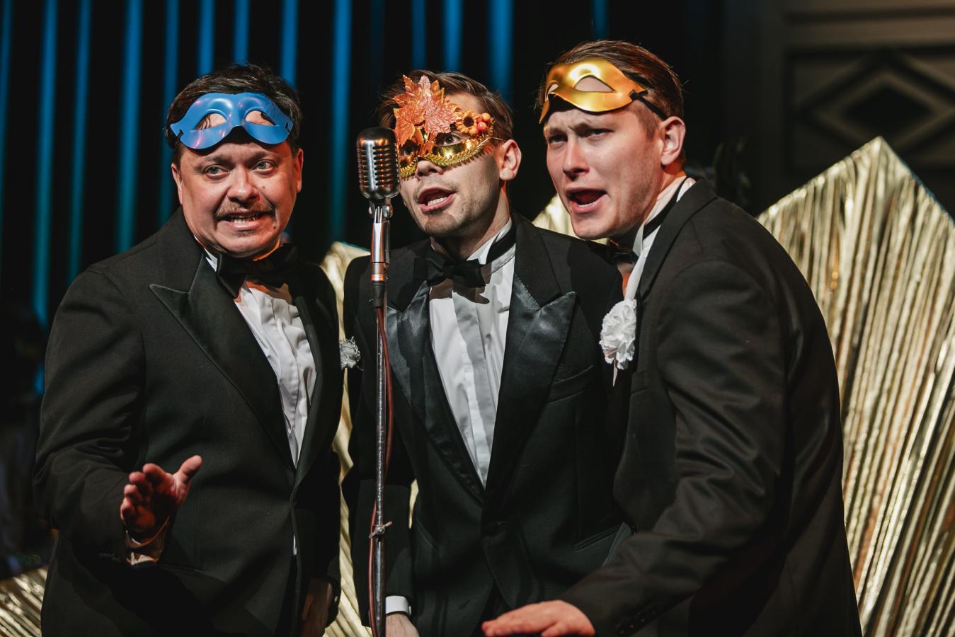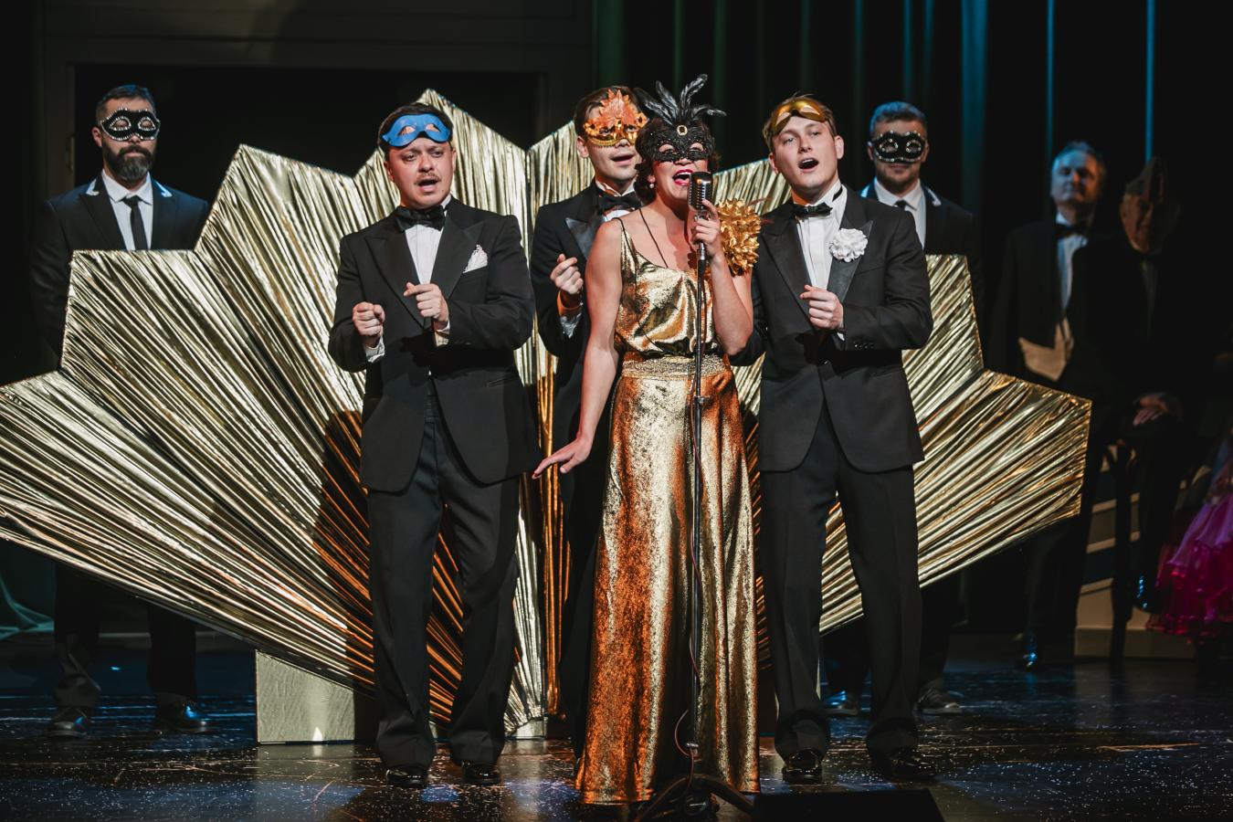 Číšníci, masky ad. ... Vladimír Chmelař *, Dagmar Nárožná * / Barbora Secká Halák *, Zuzana Mejzlíková *, Petra Mori *, Monika Němcová *, Petr Červený *, David Kopecký *
