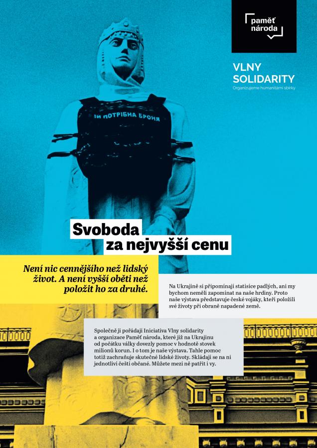 Není nic cennějšího než lidský život. A není vyšší oběti než položit ho za druhé. Na Ukrajině denně vzpomínají na statisíce padlých – a ani my bychom neměli zapomínat na naše hrdiny. Panelová výstava připomíná české vojáky, kteří položili své životy při obraně napadené země. Společně ji pořádají projekt Paměť národa a Iniciativa Vlny solidarity, které od počátku války poskytují pomoc v řádu stovek milionů korun. Návštěvníci výstavy mohou prostřednictvím QR kódu přispět na humanitární sbírku.