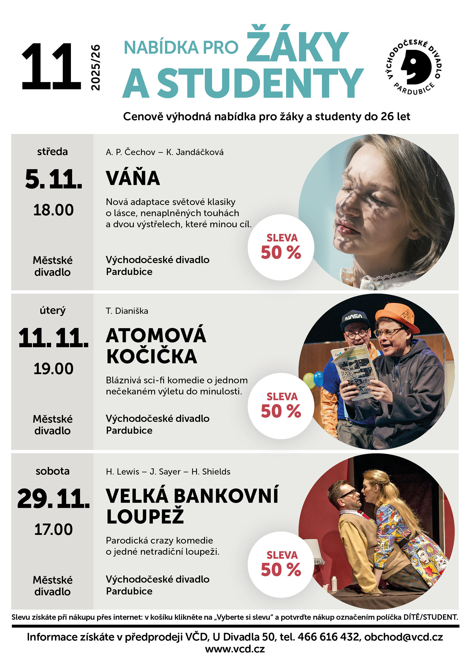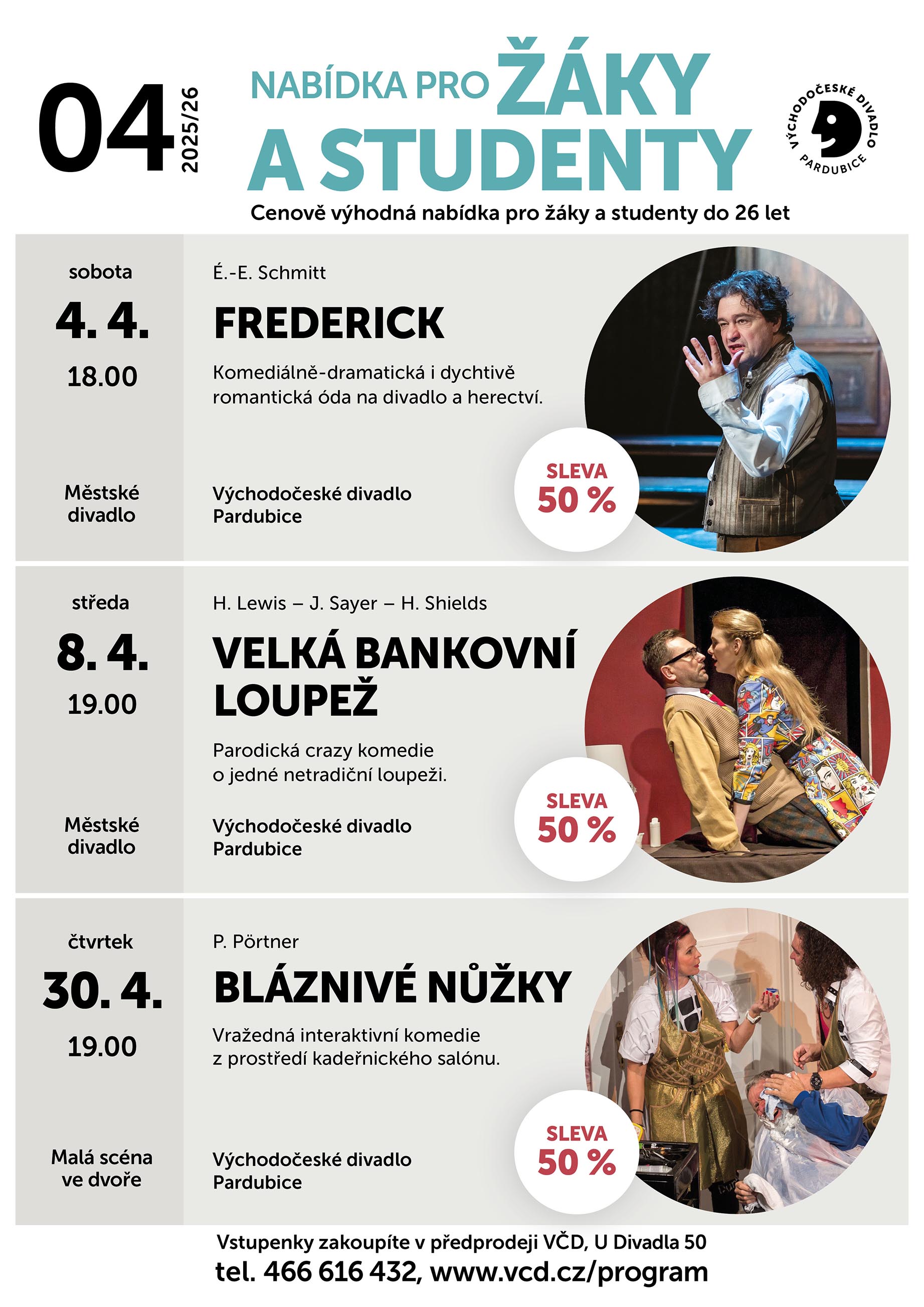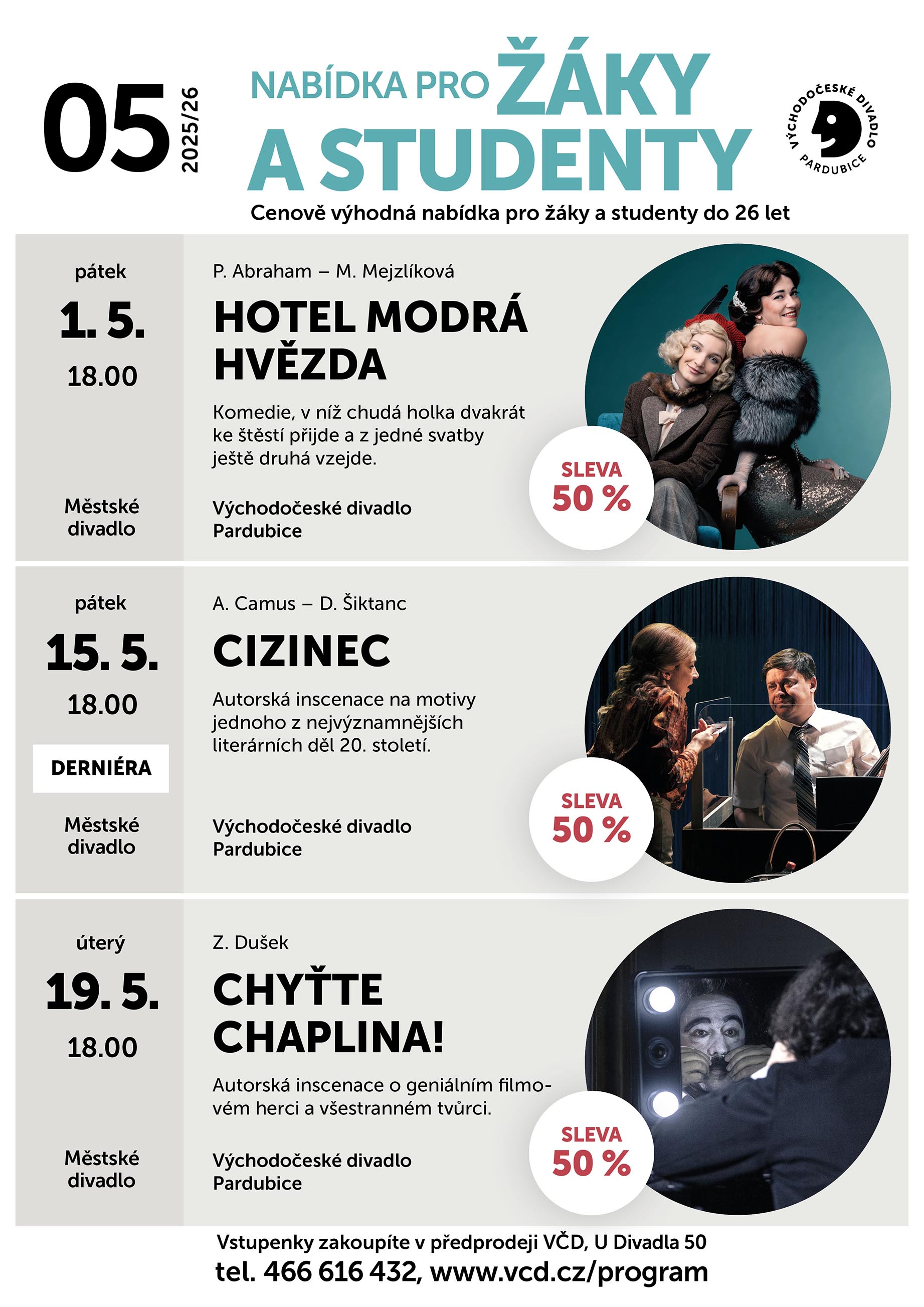Zároveň nabízíme pro žáky a studenty vstupenky s výraznou slevou také na vybraná představení v Městském divadle.