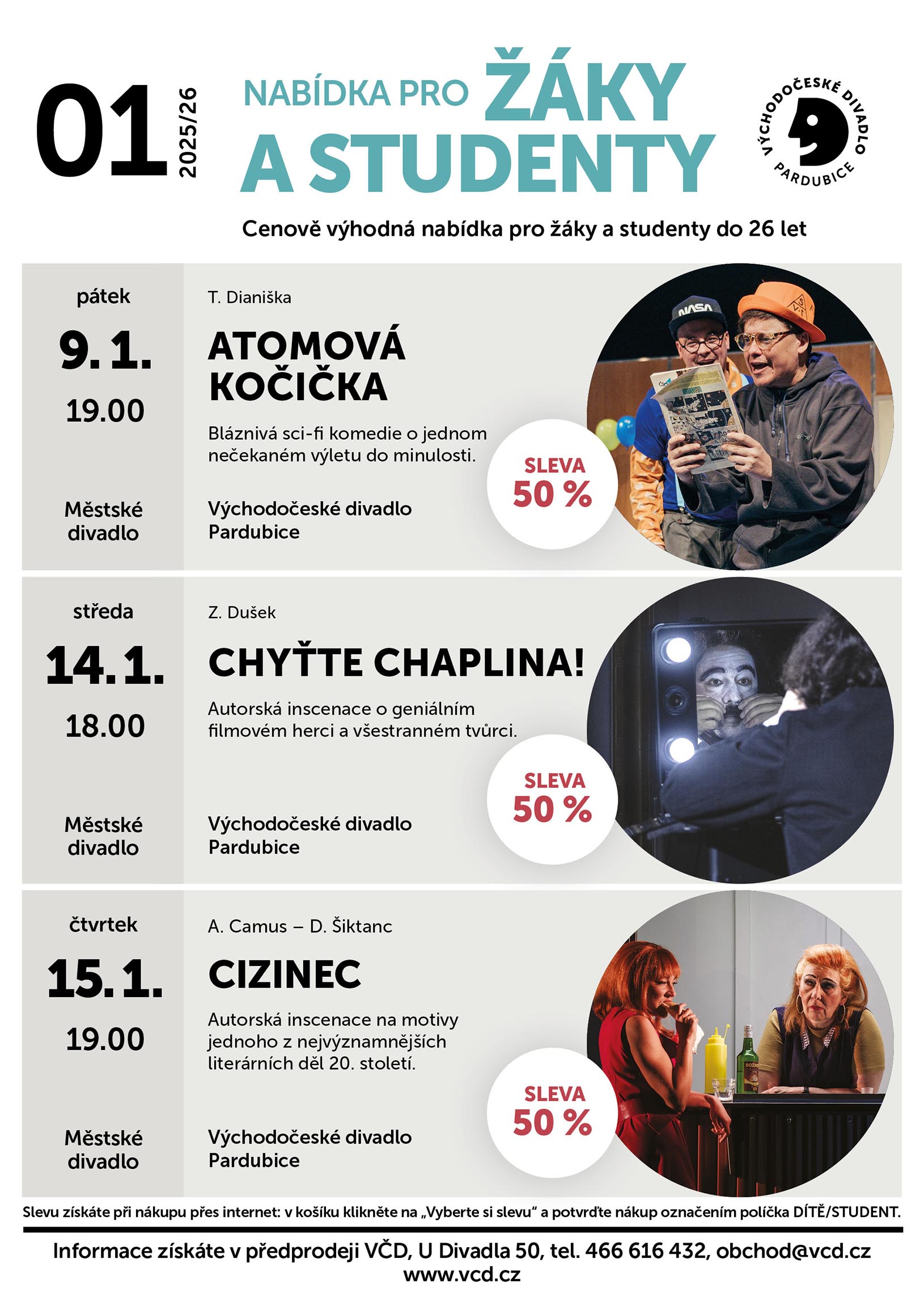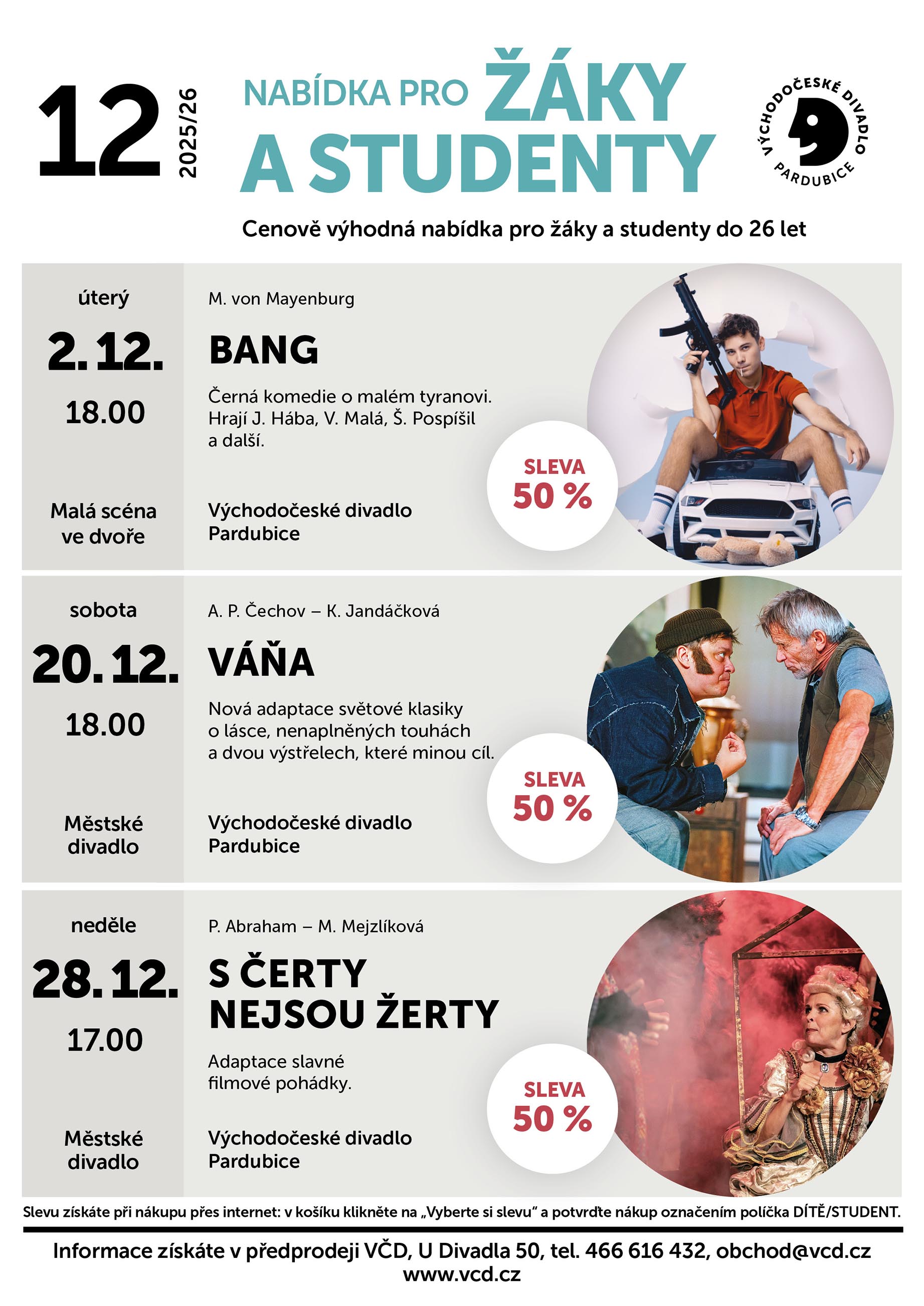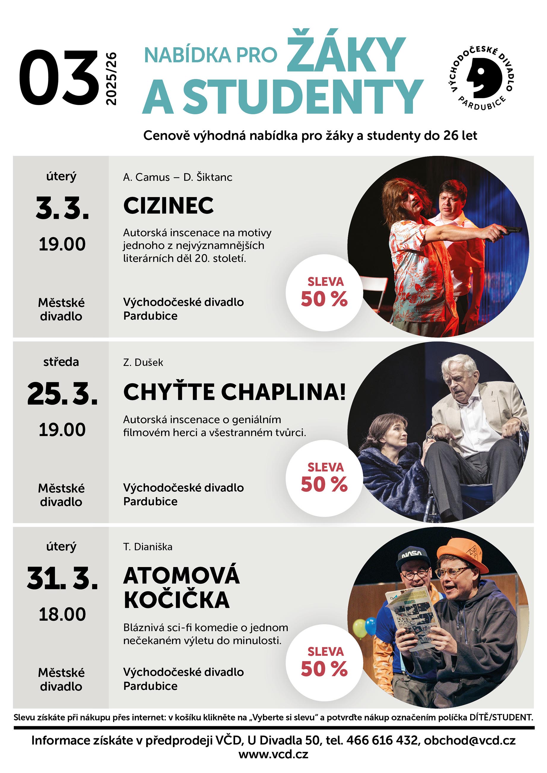 Zároveň nabízíme pro žáky a studenty vstupenky s výraznou slevou také na vybraná představení v Městském divadle.